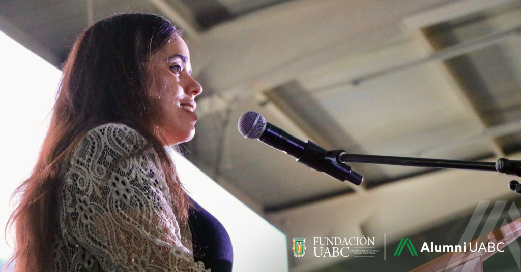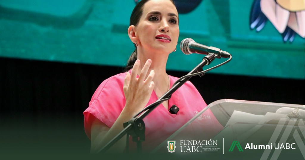 - Dra. Mariana Delgado Fernández, Alumni UABC y también distinguida con el reconocimiento Meritus 2024, quien motivó a las y los estudiantes a vivir su etapa universitaria con propósito, dedicación y orgullo por formar parte de la comunidad Cimarrona.